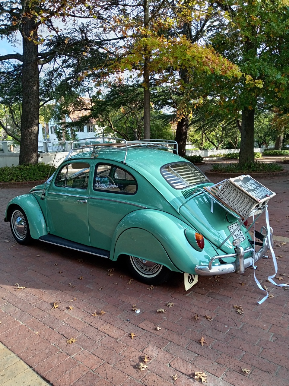 She's a 1964 VW Beetle and goes by the name Duchess. If you're looking for class and old school look,you found the perfect car. Her colour is mint green (slightly darker than original) white wall tyres and fitted wheel covers to add some more classic sass. She has a roof rack and boot rack, with an old picnic basket. She's perfect for Weddings,Matricballs, Photoshoots etc..make this beauty a part of your special occasion.