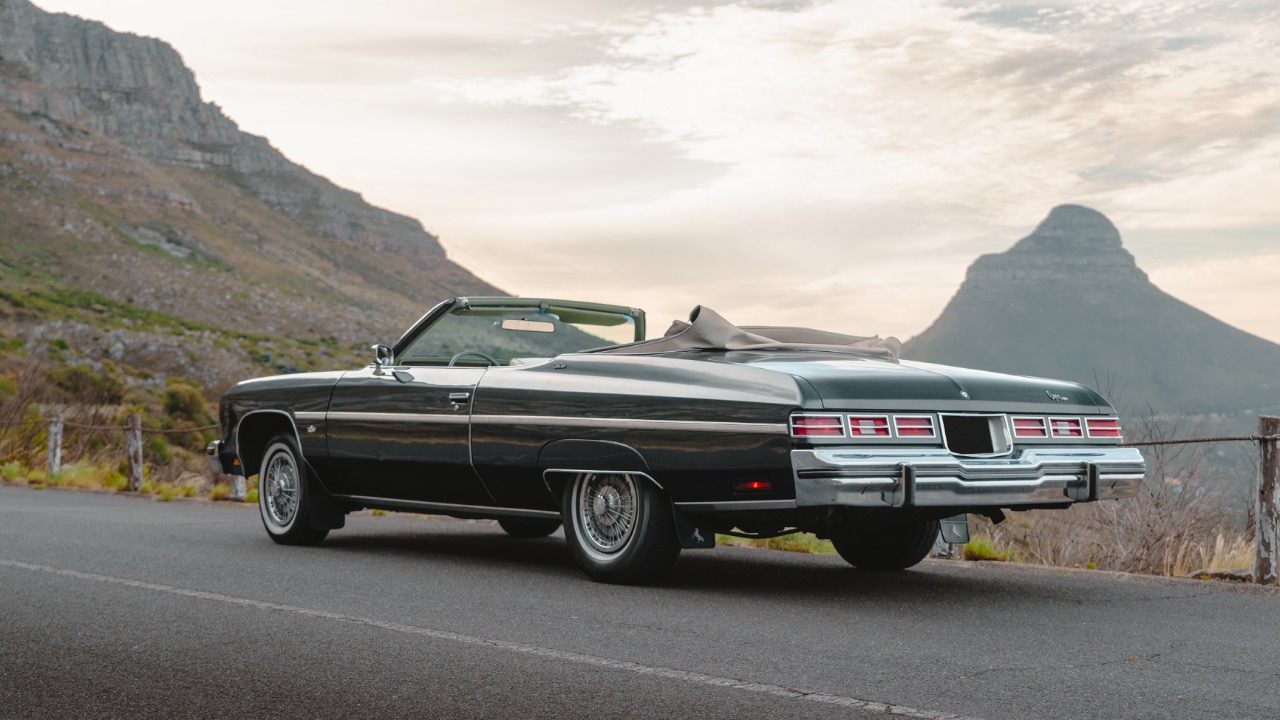 NO SELF DRIVE. Revel in the pinnacle of luxury travel with our chauffeur-driven 1975 Chevrolet Caprice Classic V8 Convertible Dark Green, tailored for Matric Balls, Weddings, Film Shoots, and Tours. Whether you're exploring the scenic wonders of the Cape Peninsula or indulging in wine tasting adventures in Constantia and Stellenbosch Winelands, every journey is a testament to opulence and extravagance.