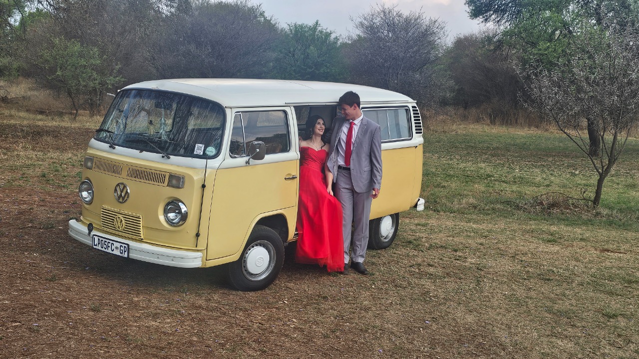 Experience the joy of traveling in a 1976 VW Kombi "ALICE" this vehicle was built in South Africa and put a smile on any face as she makes sure you arrive in style. If booking falls on a weekday and there's expected increased traffic volume this adds to the travel time so please book for a minimum of two hours to allow enough time for travel and the photo session.