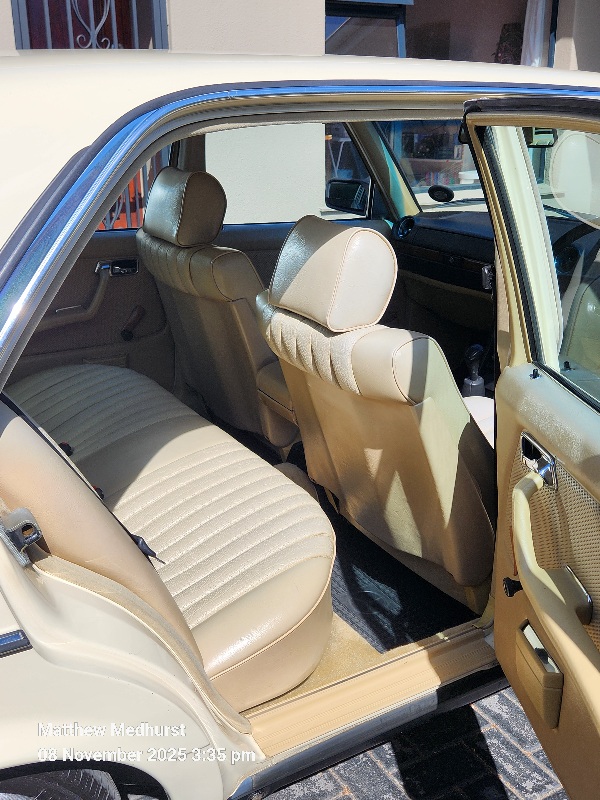 Take a ride back in time in a 1980's Mercedes! Slide onto the Mtex vinyl seats and enjoy a comfortable quality drive through the western cape in a well-built, reliable classic car!