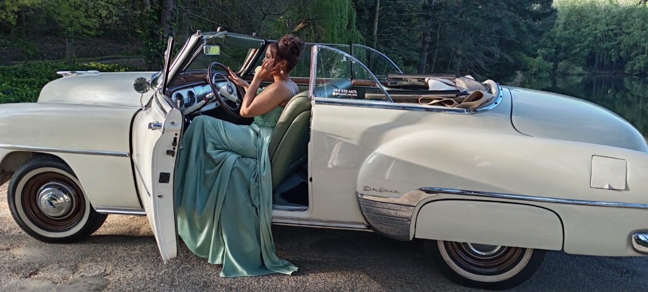 Immerse yourself in the glamour of a bygone era with our chauffeur-driven 1952 Chevrolet Deluxe Convertible, tailored for Matric Balls, Weddings, Film Shoots, and Tours. From the enchanting landscapes of Chapmans Peak to the vineyards of Stellenbosch Winelands, this classic beauty promises an unforgettable journey filled with elegance and grace.